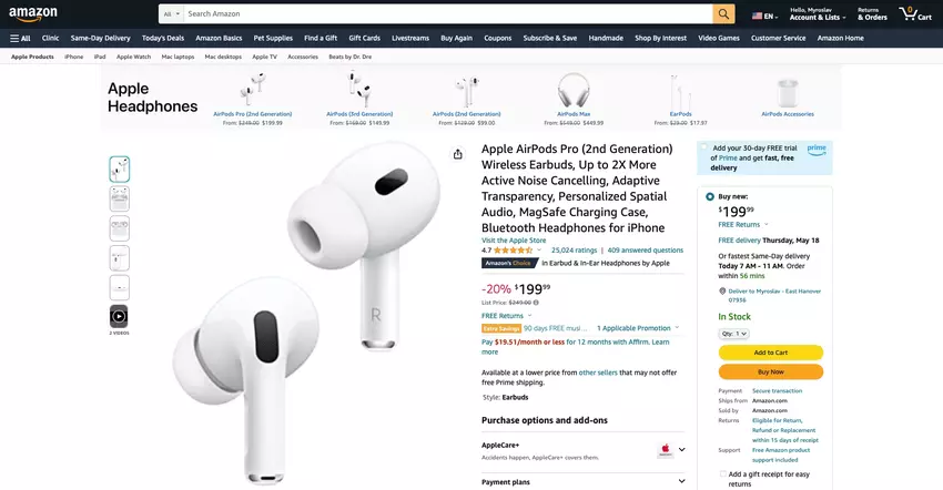 Oferta dnia: Apple AirPods Pro 2 na Amazon z rabatem 50$