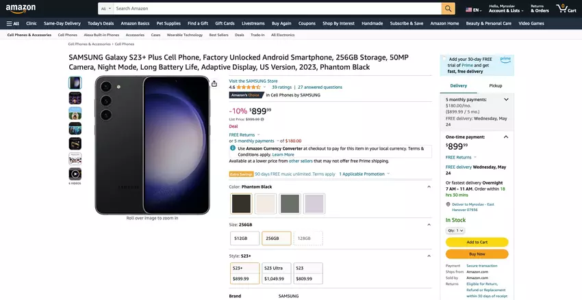 Samsung Galaxy S23+ w sprzedaży na Amazon za 105 USD taniej