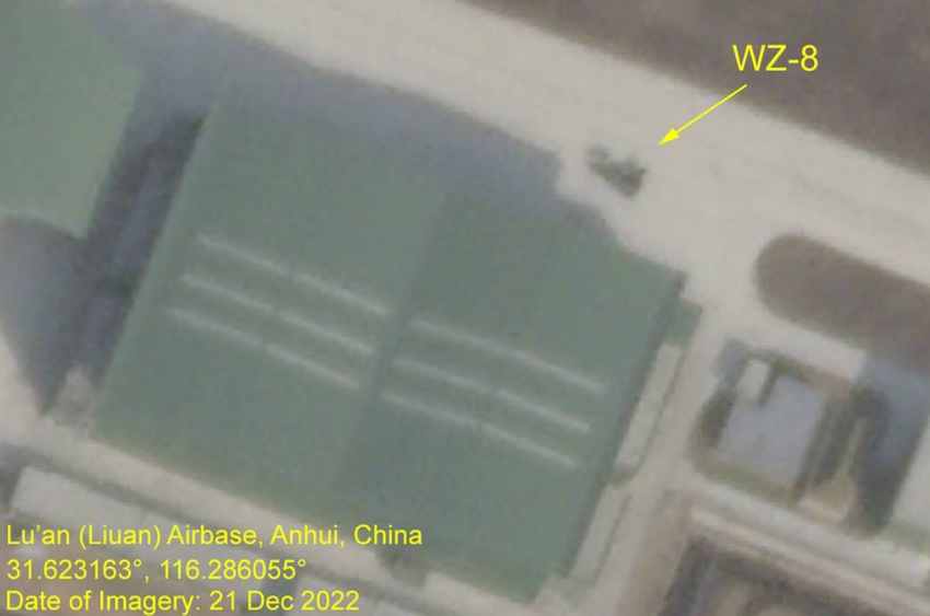 Reporterzy Defense News uzyskali zdjęcie tajnego chińskiego naddźwiękowego drona WZ-8. Dron jest zaparkowany przed jednym z nowych hangarów w bazie lotniczej Lu'an w prowincji Anhui.