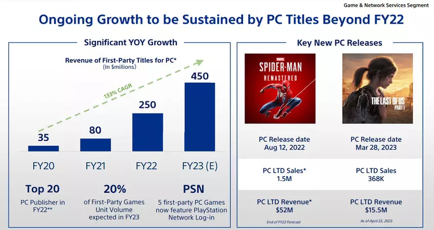 Dla przykładu, pecetowa wersja Marvel's Spider-Man (2018) sprzedała się w liczbie 1,5 miliona sztuk i przyniosła 52 miliony dolarów (stan na 31 marca). Wersja PC gry The Last of Us Part I sprzedała się w 368 000 egzemplarzy, zarabiając 15,5 miliona dolarów (stan na 23 kwietnia).