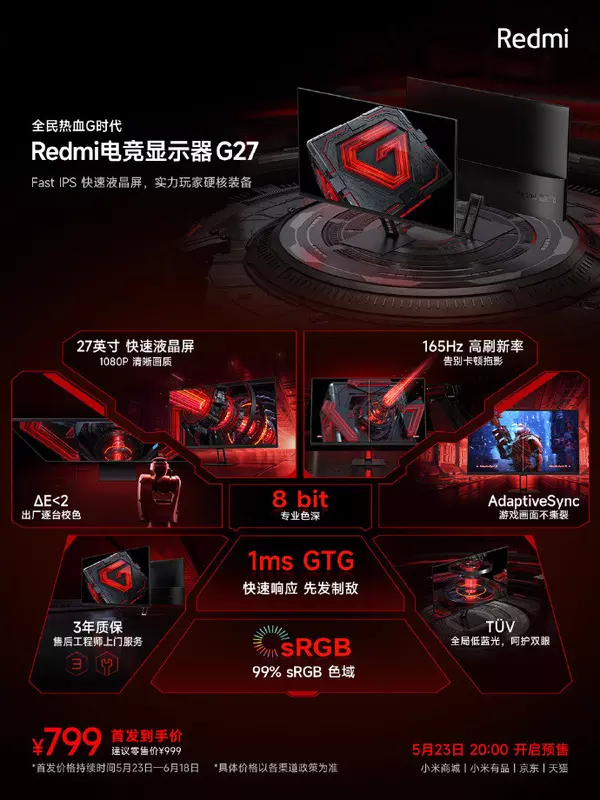 Redmi G27 był oficjalnie rekomendowany przez producenta w cenie 140 USD, ale cena została obniżona do 110 USD w momencie premiery. Nowy produkt jest uproszczoną wersją G27Q, który został wyceniony na 240 USD.