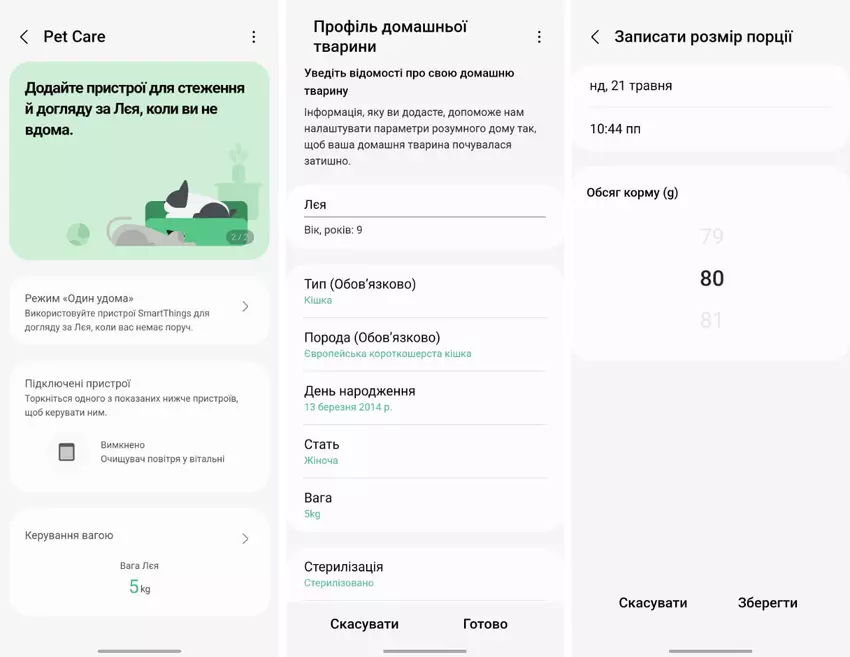 Wiele osób ma zwierzęta domowe. Pod względem ogólnej liczby kotów Ukraina jest jednym z 10 najlepszych krajów na świecie. Nic więc dziwnego, że SmartThings oferuje osobne opcje opieki nad futrzanymi pupilami. Możesz monitorować ich wagę i spożycie pokarmu, a także integrować scenariusze z, na przykład, oczyszczaczami powietrza lub automatycznymi dozownikami karmy. Przykładowo, kota lub psa można monitorować za pomocą kamery odkurzacza Samsung Jet Bot AI+.