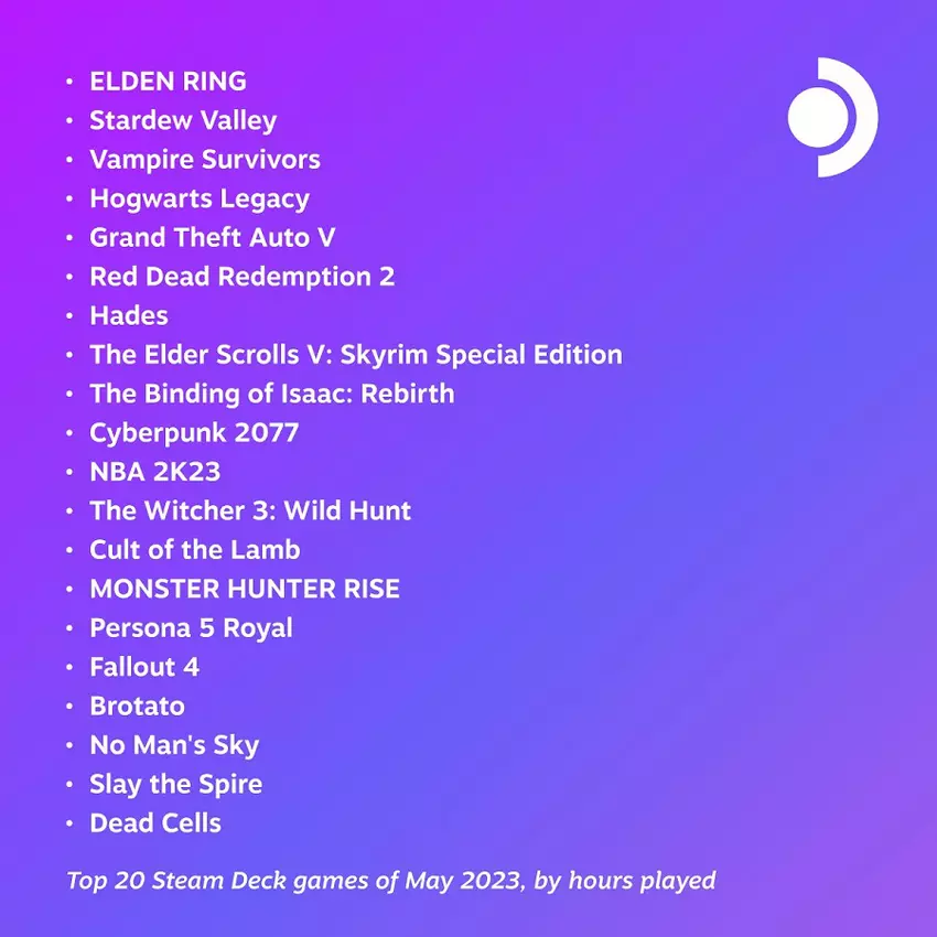 Elden Ring, Stardew Valley i Vampire Survivors to najpopularniejsze gry maja na Steam Deck.