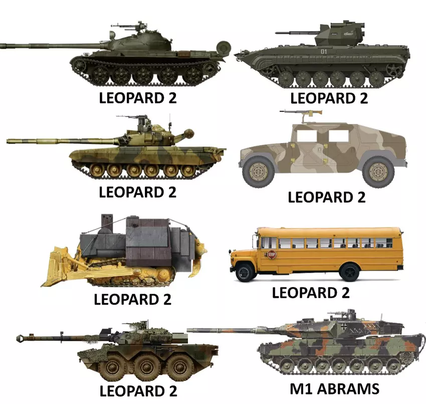 Na powyższym zdjęciu widać, jak rosyjscy propagandyści postrzegają wszelkie maszyny na Ukrainie. Wcześniej podawali pojazd opancerzony AMX-10RC i samobieżną haubicę M109 jako zniszczony czołg Leopard 2.