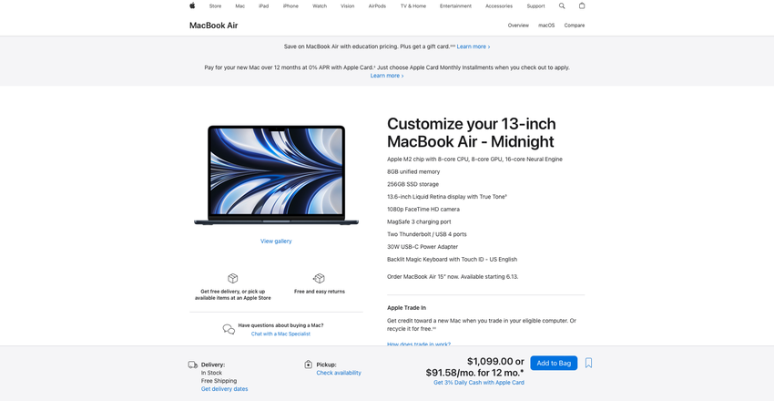 Apple, po premierze 15-calowego MacBooka Air na WWDC 2023, obniżyło cenę młodszego modelu urządzenia.