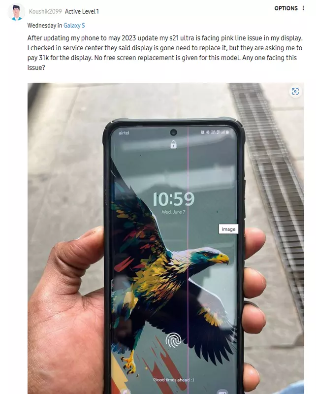 Smartfony Samsung Galaxy S21 Ultra zaczęły wyświetlać różowe smugi na ekranie po majowej aktualizacji - centrum serwisowe zaleca wymianę wyświetlacza