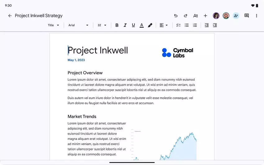 Google pokazał przykład aplikacji Docs na tablecie, która ma pasek narzędzi podobny do edytora internetowego. Ta zmiana ma większy sens na dużym ekranie niż na telefonie, chociaż firma nie podała szczegółów dotyczących obsługiwanych rozmiarów ekranu.