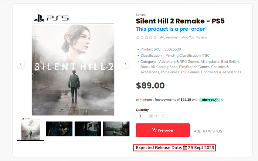 Gorilla Gaming to australijski sklep z grami wideo, który na stronie remake'u Silent Hill 2 poinformował, że gra ukaże się 29 września 2023 roku.
