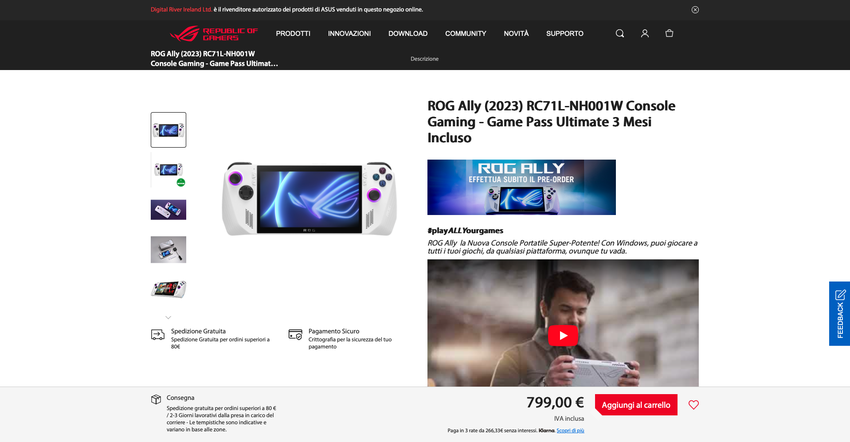 Gadżet trafił do sprzedaży we Włoszech. Mowa o modyfikacji urządzenia z chipem AMD Z1 Extreme, a także z 16 GB pamięci RAM i dyskiem SSD o pojemności 512 GB. Gadżet kosztuje 799 euro. Nawiasem mówiąc, ASUS daje subskrypcję Game Pass Ultimate na 3 miesiące w prezencie z urządzeniem. W innych krajach europejskich nowość rozpocznie sprzedaż w najbliższych dniach.