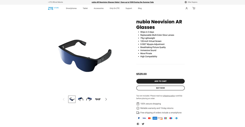 nubia Neovision Glass ze 120-calowym wirtualnym wyświetlaczem trafia do sprzedaży