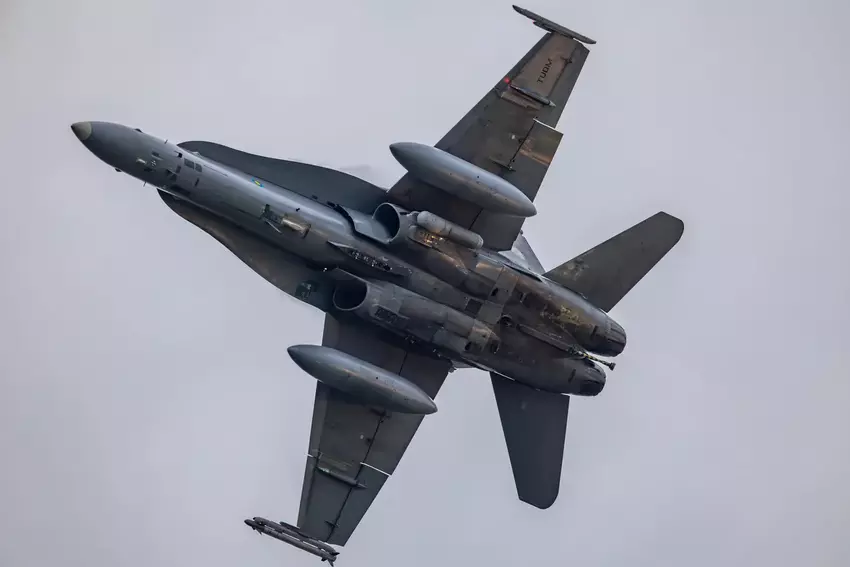 Fotografowi udało się zrobić zdjęcie pułapki cieplnej AN/ALE-47 na myśliwcu F/A-18D Hornet
