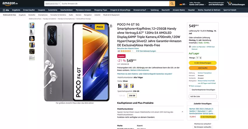 POCO F4 GT 5G na Amazon: smartfon do gier z chipem Snapdragon 8 Gen 1 i ładowaniem 120 W ze zniżką 150 euro