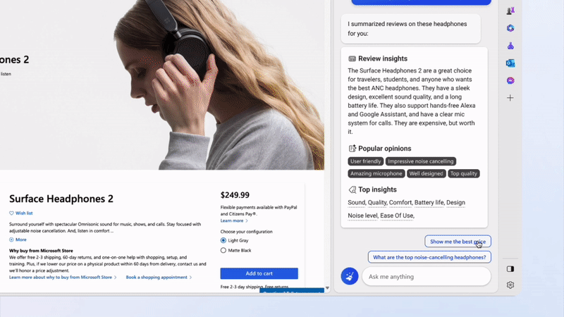 Microsoft wprowadził do paska bocznego przeglądarki Edge nowe narzędzia zakupowe oparte na sztucznej inteligencji i wyszukiwarce Bing.