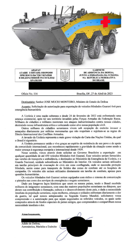 Według brazylijskiej gazety Info Defensa, departament spraw strategicznych, obrony i uzbrojenia brazylijskiego MSZ odmówił ukraińskiemu rządowi. Mimo że Ukraina zagwarantowała, że pojazdy nie będą zaangażowane w operacje bojowe.