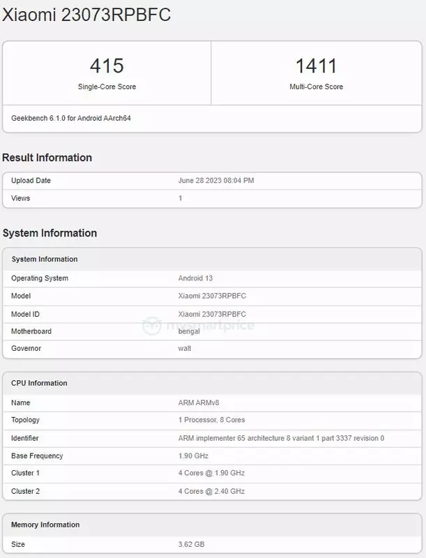 Gadżet ma numer modelu 23073RPBFC. Według raportu, urządzenie będzie napędzane ośmiordzeniowym procesorem Qualcomm Snapdragon 680. Oprócz tego nowość otrzyma 4 GB pamięci RAM i system operacyjny Android 13.