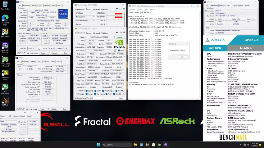 Wraz z historycznym overclockingiem, ASUS GeForce RTX 4090 ROG Matrix ustanowił kolejny rekord. W benchmarku GPUPI podkręcona karta graficzna obliczyła liczbę π z dokładnością do 32 miliardów miejsc po przecinku w 45,402 sekundy.
