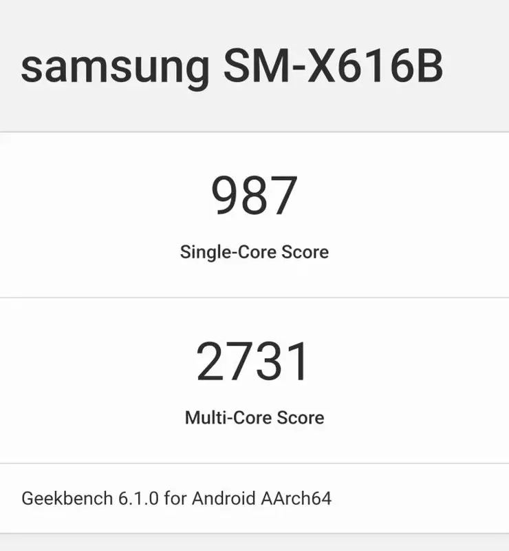 Samsung Galaxy Tab S9 FE+ przeszedł test wydajności w benchmarku Geekbench 6. Tablet ma numer modelu SM-X616B. Wynik w trybach Single-Core i Multi-Core wyniósł odpowiednio 987 i 2731 punktów.