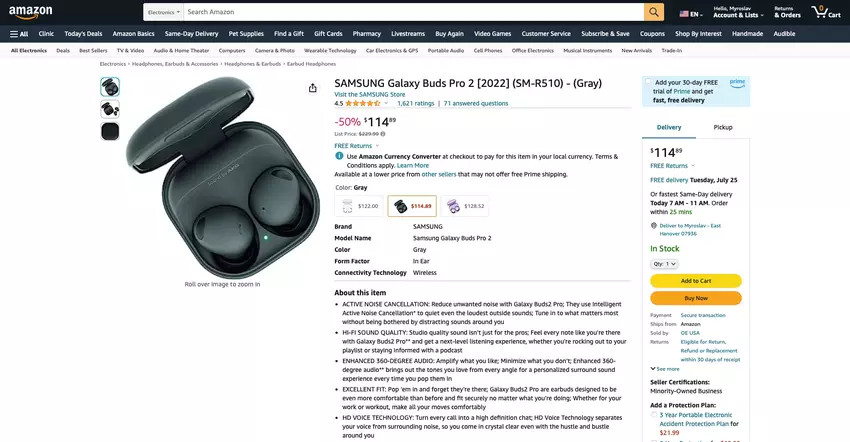 Mowa o modelu Galaxy Buds 2 Pro. Urządzenie w kolorze szarym można kupić teraz na Amazonie za check price on amazon.