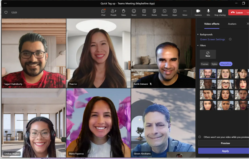 Maybelline Beauty jest już dostępne dla klientów Microsoft Teams Enterprise. Efekty można znaleźć w zakładce Video Effects w ustawieniach spotkań.