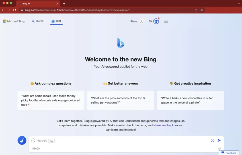 Bing Chat jest teraz dostępny dla użytkowników przeglądarek Chrome i Safari