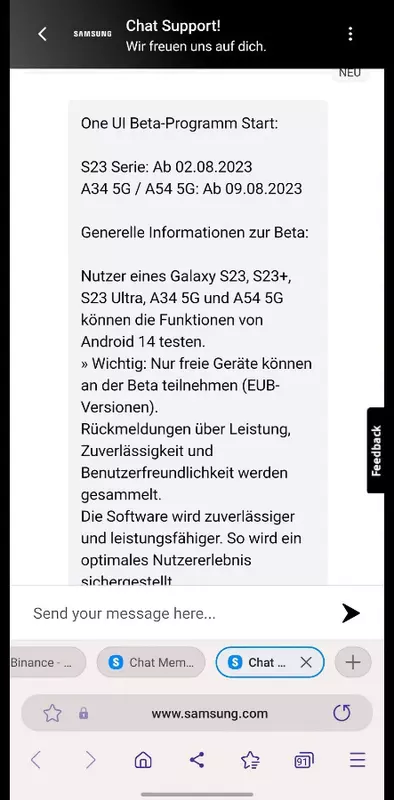 Według pomocy technicznej Samsung Germany, testowanie One UI 6.0 rozpocznie się 2 sierpnia. Czyli w najbliższą środę. Jako pierwsi firmware będą mogli zainstalować właściciele flagowych smartfonów Galaxy S23, Galaxy S23+ i Galaxy S23 Ultra. Następnie, 9 sierpnia, oprogramowanie w wersji beta zostanie wydane dla Galaxy A34 5G i Galaxy A54 5G.