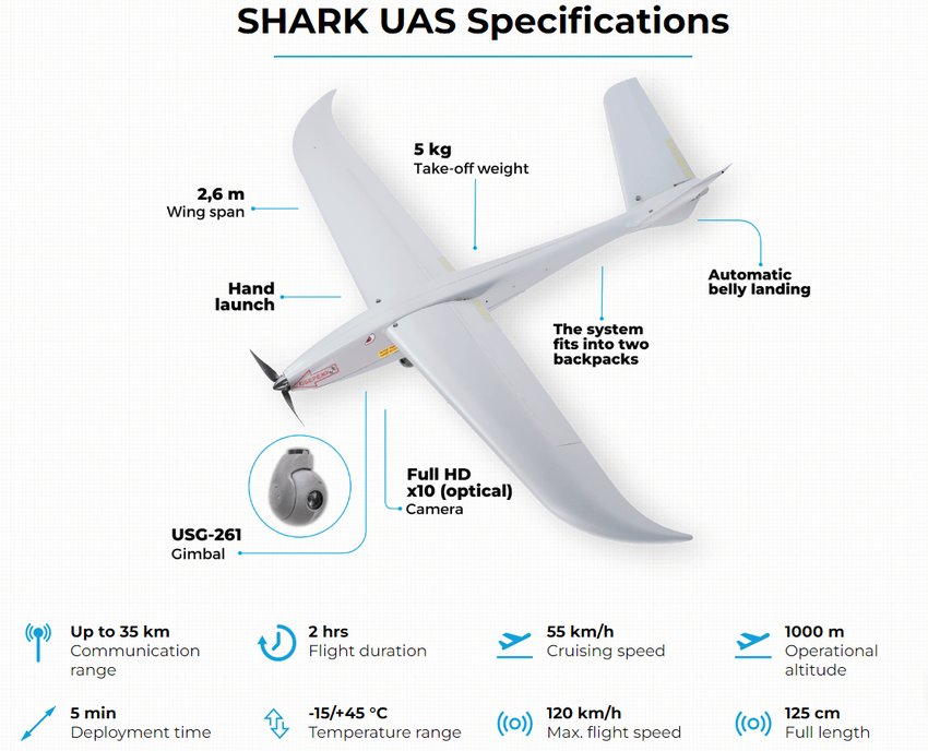 Ukraińskie siły zbrojne korzystają z dronów wyprodukowanych przez Ukrspecsystems. Ukraiński producent niedawno w pełni zaprezentował i ujawnił charakterystykę techniczną nowego drona. Nosi on nazwę MINI SHARK.