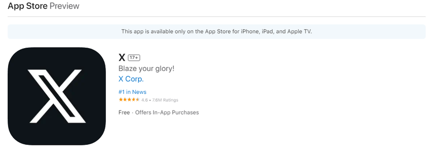 Wygląda na to, że Elon Musk znalazł argumenty, które zmusiły Apple do zmiany decyzji. Jak widać na powyższym zrzucie ekranu, aplikacja nazywa się teraz X zamiast Twitter w App Store.