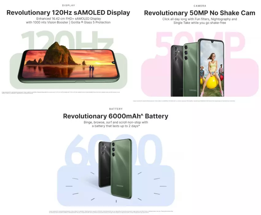 Jeśli wierzyć plotkom, Galaxy F34 5G pod względem specyfikacji będzie przypominał model Galaxy M34 5G. Oznacza to, że urządzenie otrzyma wyświetlacz OLED o częstotliwości odświeżania 120 Hz i przekątnej 6,5 cala, pojemną baterię 6000 mAh, a także aparat główny z matrycą 50 MP.