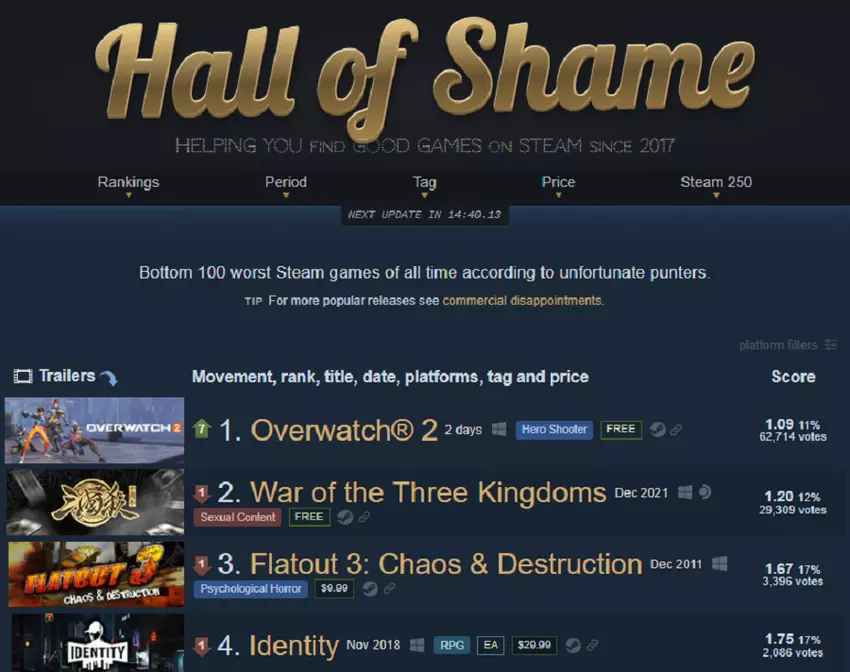 W ciągu zaledwie dwóch dni ogromna liczba negatywnych recenzji na temat Overwatch 2 doprowadziła do tego, że gra Blizzarda otrzymała tytuł najgorszej gry w historii Steam.