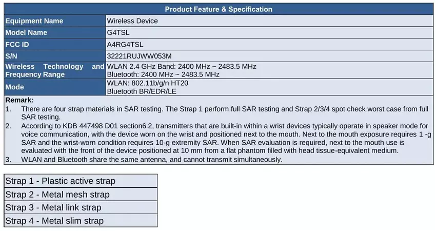 Poza tym wydaje się, że zegarek będzie dostępny z czterema wersjami pasków: silikonowym, metalową siatką, metalowymi ogniwami i cienkim metalowym paskiem. Najwyraźniej ten ostatni cienki metalowy pasek nigdy nie był używany w gadżetach Google.