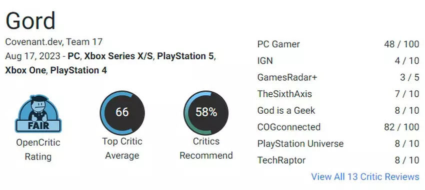 I tak, na Metacritic wersja Gorda na PC została oceniona na zaledwie 58 punktów, podczas gdy wersja na PlayStation 5 otrzymała 75. Prawdopodobnie tak duża różnica w ocenach wynika z problemów technicznych gry na komputerach osobistych.