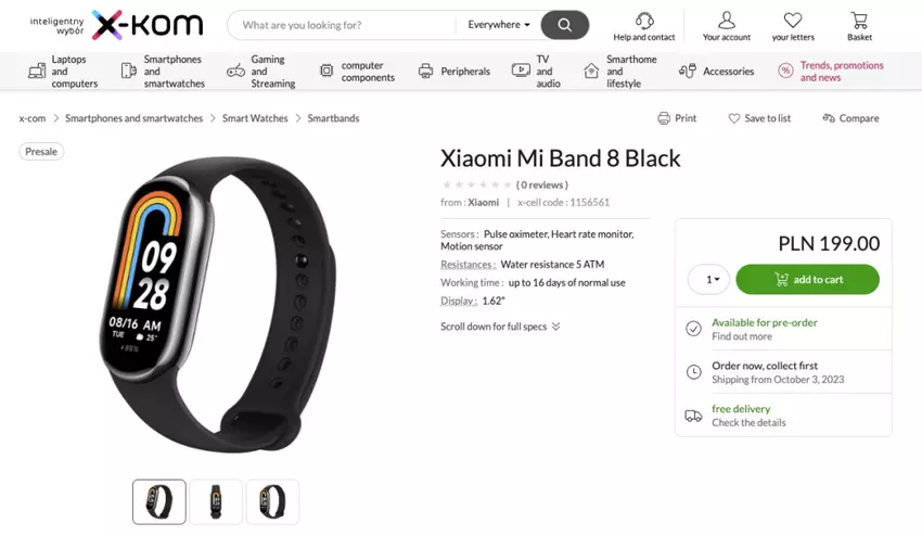 Duży polski detalista utworzył stronę produktu na swojej stronie internetowej ze szczegółami dotyczącymi rozpoczęcia sprzedaży. To prawda, bransoletka nie nazywa się Xiaomi Smart Band 8, ale Mi Band 8. Strona została szybko usunięta, ale nie tak szybko, że dziennikarze nie zdążyli zrobić zrzutu ekranu.