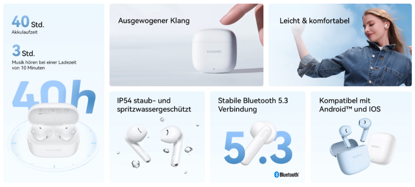 Gadżet zadebiutował w Niemczech. Słuchawki mają kompaktowe wymiary i ważą 3,8 grama. Model jest wyposażony w Bluetooth 5.3 i stopień ochrony przed wodą IP54. FreeBuds SE 2 są sterowane za pomocą paneli dotykowych. Nowość posiada czujniki zbliżeniowe.