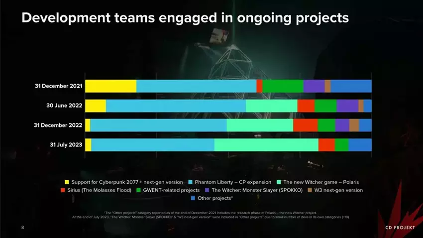 Koszty produkcji nowych projektów z serii Wiedźmin i Cyberpunk stopniowo rosną. W pierwszej połowie tego roku przekroczyły one 38 milionów dolarów. Jednocześnie systematycznie spada wsparcie już wydanych gier.