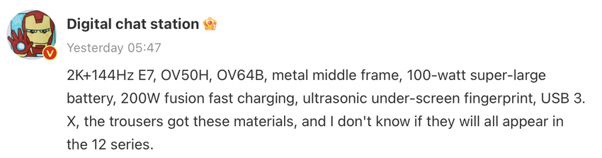 Tym razem informacjami podzielił się chiński insider Digital Chat Station. Nowe produkty będą wyposażone w ekrany 2K Samsung E7 AMOLED o częstotliwości odświeżania 144 Hz. Ponadto urządzenia będą wyposażone w nowy topowy chip Snapdragon 8 Gen 3 oraz główny aparat z czujnikiem peryskopowym OmniVision OV64B. Być może taki czujnik otrzyma tylko topowy model z serii iQOO 12 Pro.