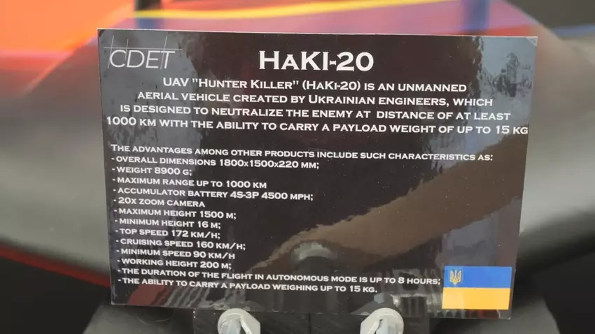 Dron nie boi się wojny elektronicznej wroga i był już używany przez Siły Zbrojne Ukrainy. Całkowite wymiary drona wynoszą 1800 x 1500 x 220 mm, a jego waga to 8,9 kg.