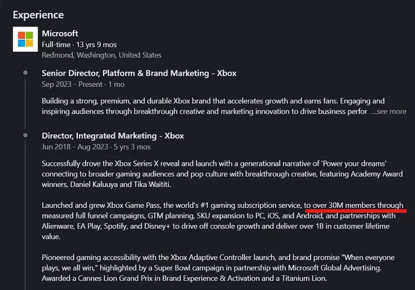 Tym bardziej dziwi fakt, że nowy starszy dyrektor ds. globalnej marki i zintegrowanego marketingu Xbox Craig McNary opublikował liczbę subskrybentów Game Pass.