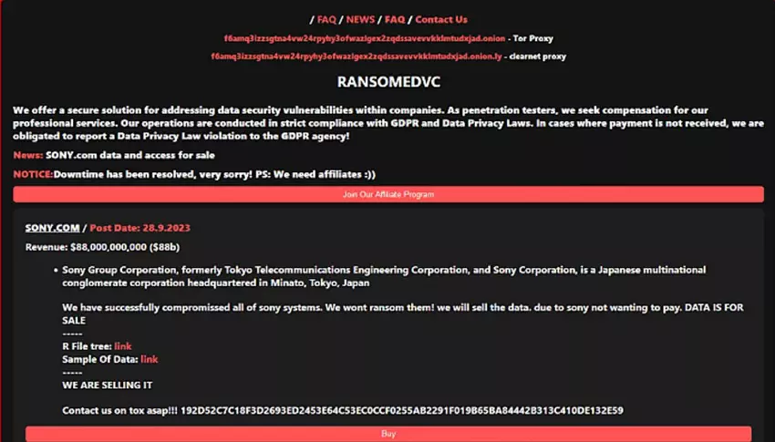 Najwyraźniej atakujący z Ransomed.vc zażądali okupu od Sony, ale najwyraźniej Japończycy odmówili, więc hakerzy otwarcie oferują odkupienie od nich danych dotyczących całej działalności Sony, w tym PlayStation.