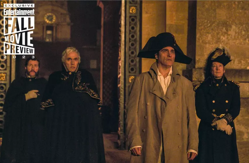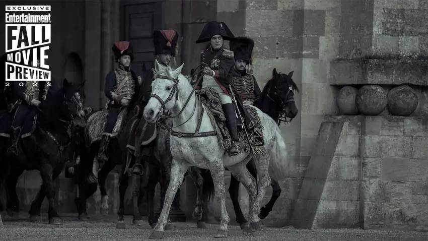 Entertainment Weekly opublikowało nowe zdjęcia przedstawiające Bonapartego wkraczającego na pole bitwy. Kilka zdjęć przedstawia Napoleona jadącego na białym koniu w mundurze wojskowym i pokazuje oczywistą niszczycielską siłę wojny.