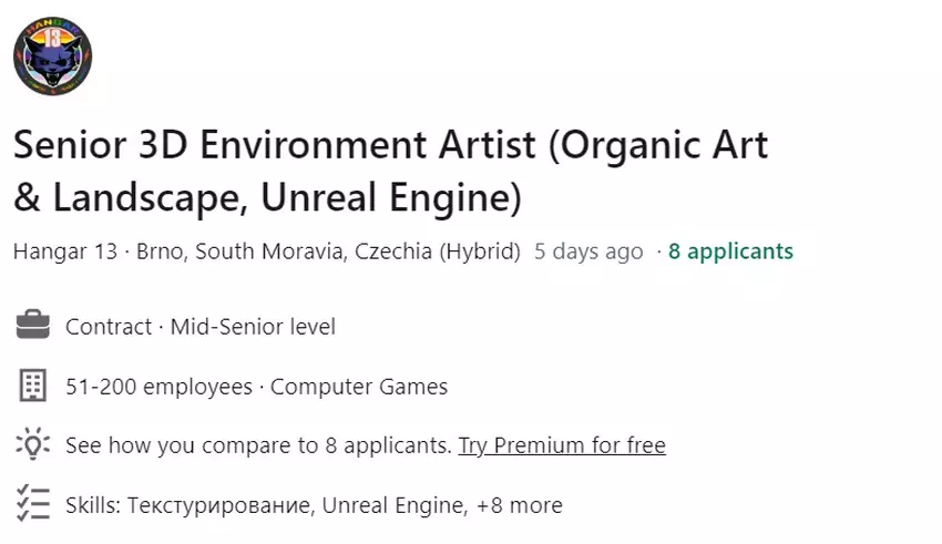 Taki wniosek można wysnuć analizując otwarte stanowiska studia Hangar 13.