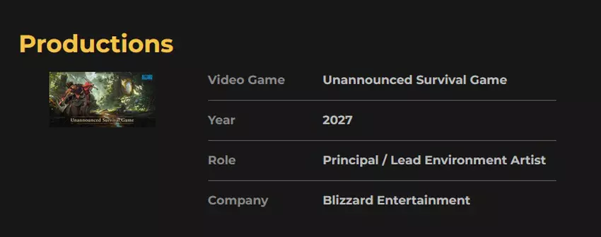 Od razu należy zaznaczyć, że czołowy artysta środowiskowy Blizzard Entertainment Dan John Cox (Dan John Cox) sprostował informację, czyniąc ją niewiarygodną, ale dziennikarzom wydania Insider Gaming udało się wykonać zrzut ekranu, który pokazuje oryginalną datę premiery symulatora przetrwania - 2027 rok.