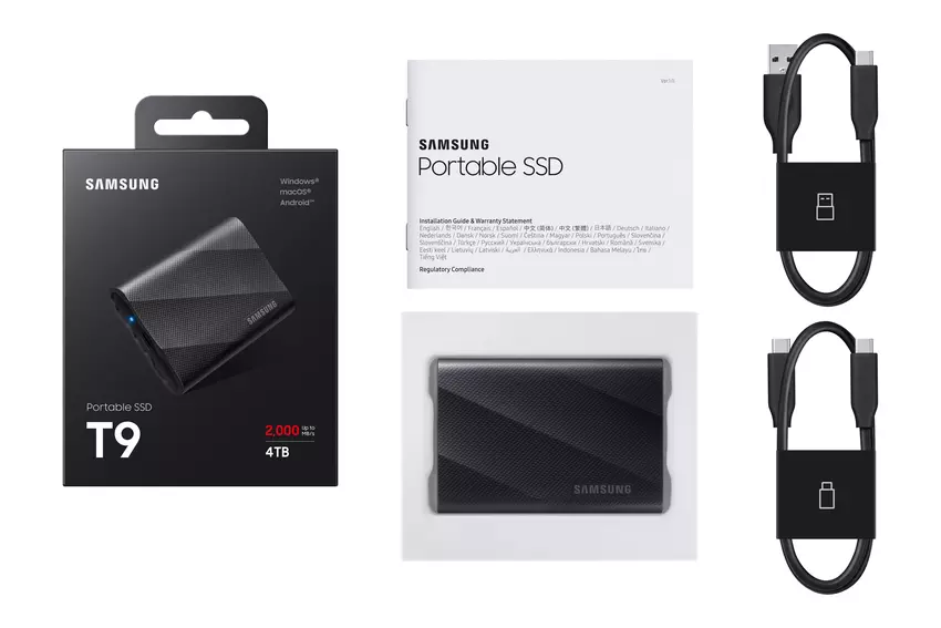 Nowy produkt otrzymał nazwę Samsung Portable SSD T9. Gadżet otrzymał chronioną obudowę zgodną z międzynarodowym standardem IEC 62368-1, a także interfejs USB 3.2 Gen 2×2 z prędkością zapisu/odczytu do 2000 MB/s (dwa razy szybciej niż model T7). Pozwala to na przesłanie 4 GB filmów Full HD w zaledwie dwie sekundy.