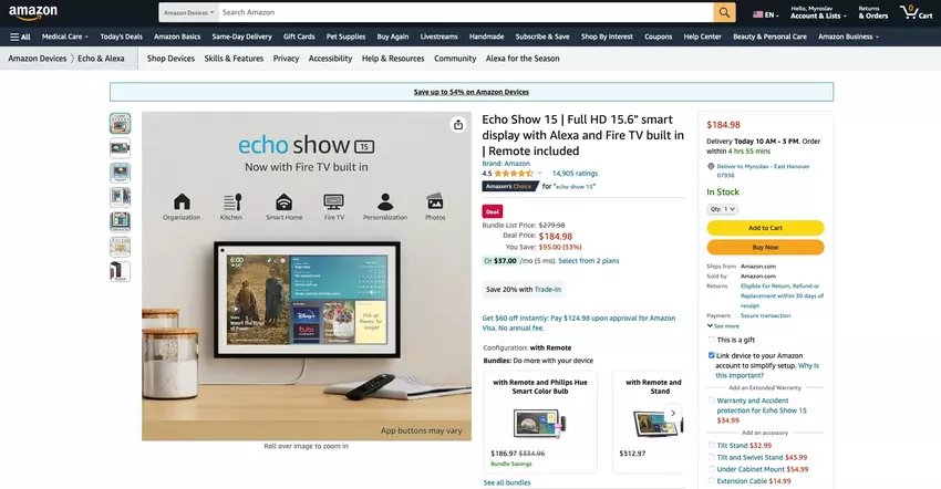 Amazon Echo Show z 15-calowym ekranem, kamerą internetową i obsługą Alexa kosztuje 184 USD (95 USD zniżki)