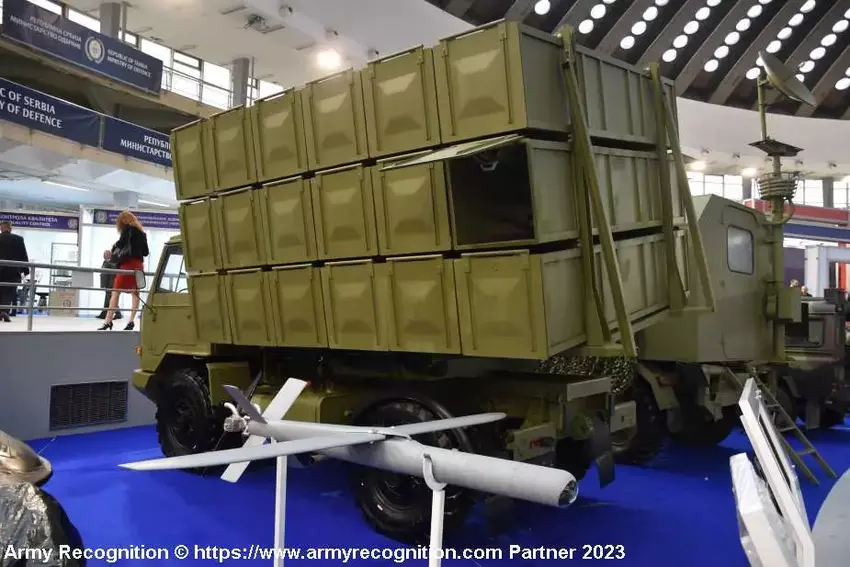W Serbii odbywają się targi zbrojeniowe Partner 2023. Lokalna firma Yugoimport zaprezentowała drona kamikadze o nazwie Raven 145.