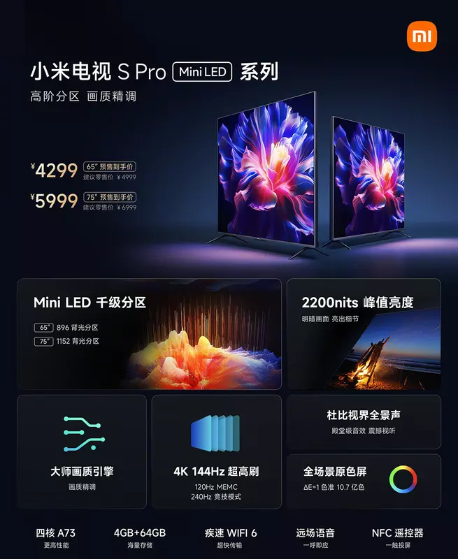 Xiaomi zaprezentowało nowe wersje Mi TV S Pro z ekranami Mini LED o przekątnych 65 i 75 cali.