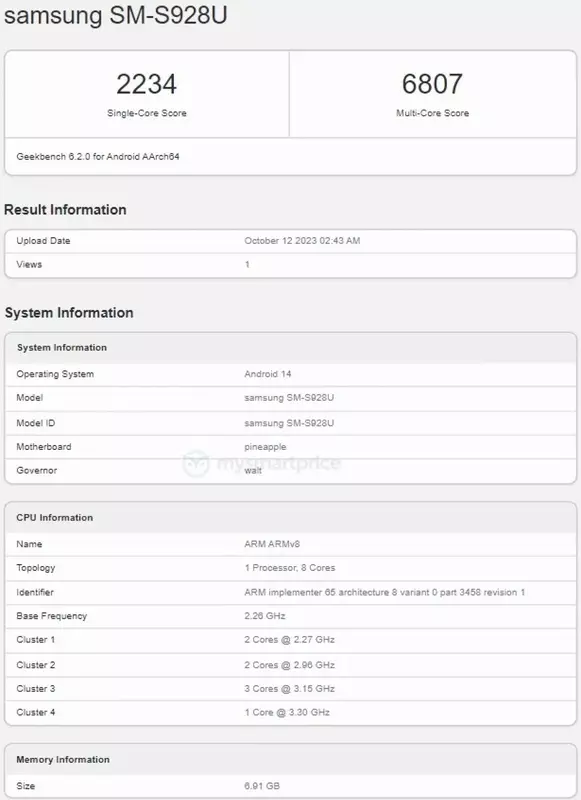 Jeśli chodzi o wyniki testów, smartfon uzyskał 2,234 punktów w trybie jednordzeniowym i 6,807 punktów w trybie wielordzeniowym. To odpowiednio o 15% i 35% więcej niż Galaxy S23 Ultra z układem Snapdragon 8 Gen 2 na pokładzie.