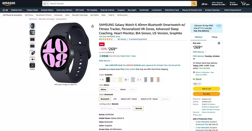 - Samsung Galaxy Watch 6, 44 mm, Bluetooth - 299 $329.9500 USD $329.9599 USD, $329.95.