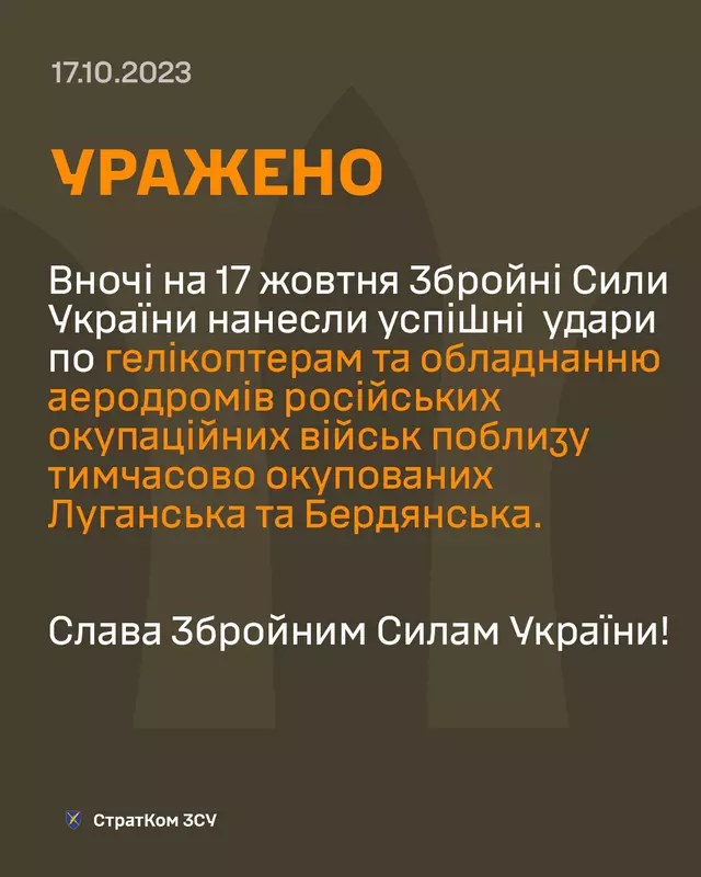 W nocy 17 października ukraińskie siły zbrojne z powodzeniem zaatakowały lotniska na tymczasowo okupowanych terytoriach.