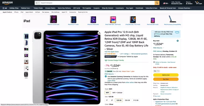 Amazon oferuje teraz przecenionego 12,9-calowego iPada Pro.