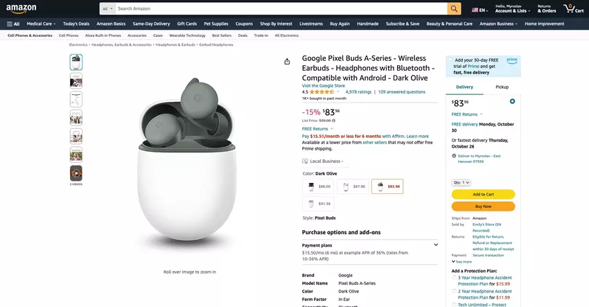 - Google Pixel Buds A Dark Olive - 83, $128.88 $128.88 99,00 USD $128.88